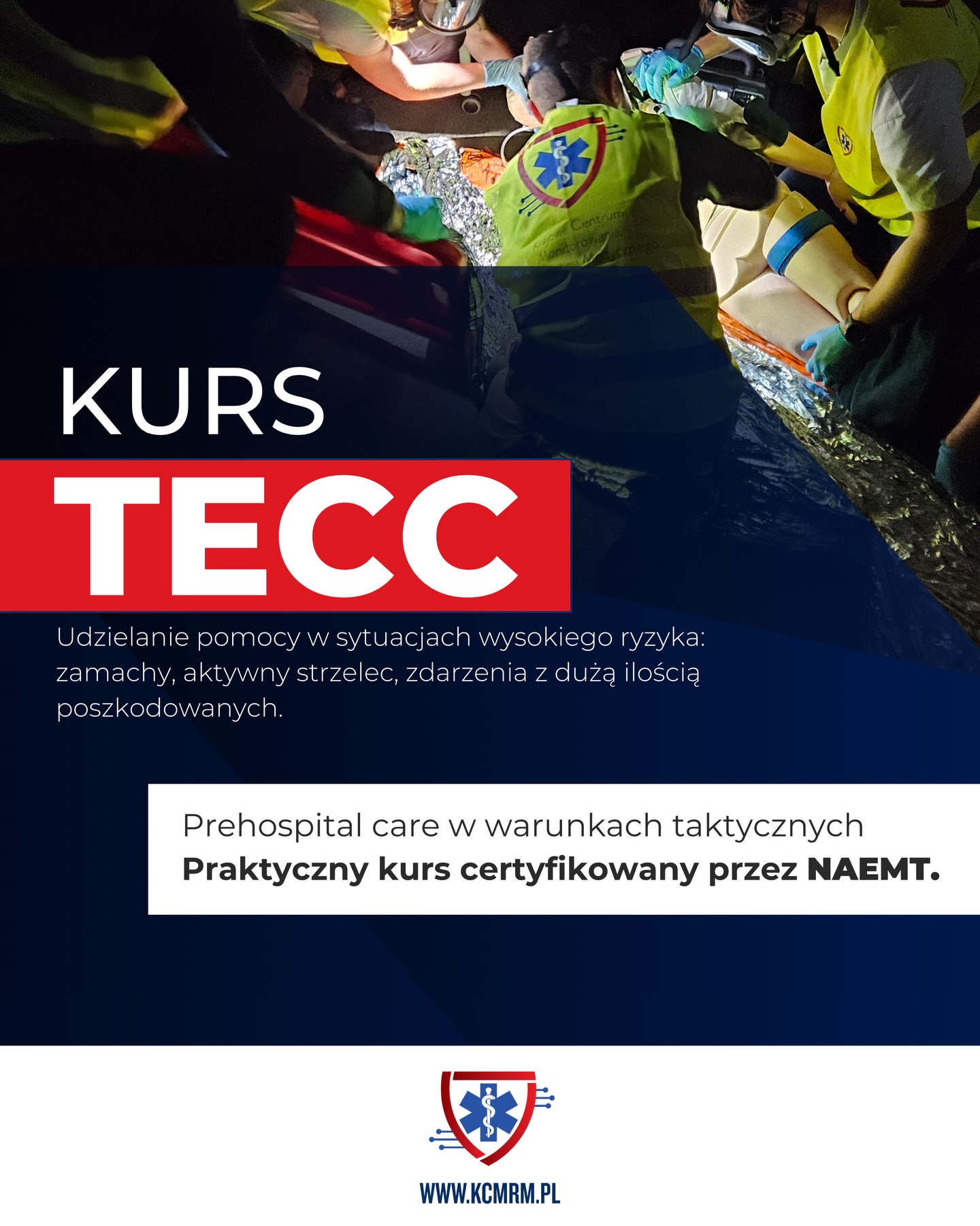 W dniach 4–7 grudnia Centrum Szkoleniowe KCMRM przeprowadziło pierwszą edycję szkolenia TECC (Tactical Emergency Casualty Care) dla medyków, certyfikowanego przez NAEMT (National Association of Emergency Medical Technicians). Jest to intensywny, praktyczny kurs z zakresu przedszpitalnej pomocy medycznej prowadzonej w warunkach taktycznych. Szkolenie TECC obejmuje zestaw najlepszych praktyk i wytycznych dotyczących udzielania