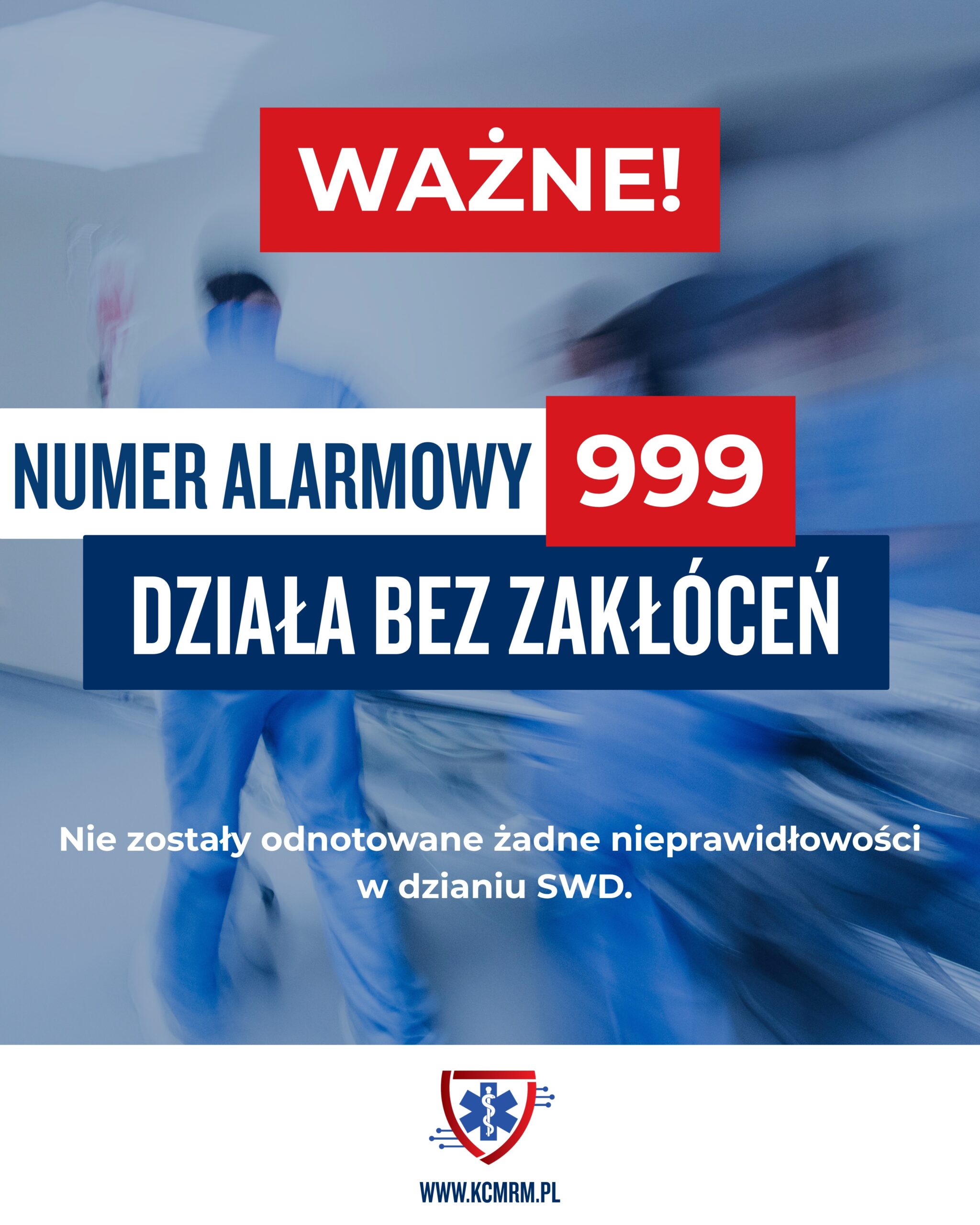 W związku z pojawiającymi się w przestrzeni medialnej informacjami odnośnie awarii numeru alarmowego 112, uprzejmie informujemy, że numer 999 działa bez zakłóceń. System Wspomagania Dowodzenia Państwowego Ratownictwa Medycznego działa stabilnie i nie zostały odnotowane żadne nieprawidłowości w jego funkcjonowaniu.